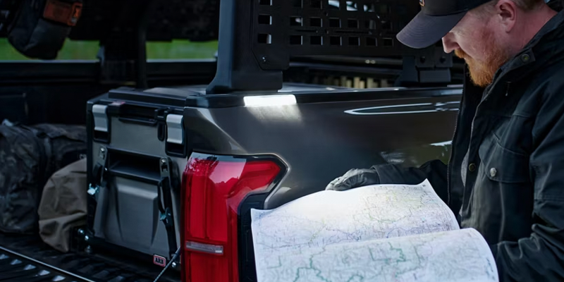• Available in either 5-ft. or 6-ft. configurations, Tacoma’s aluminum-reinforced bed is composed of an ultra-durable Sheet-Molded Composite (SMC) surface that is strong, resilient and lightweight. There’s also a slew of useful available features, like an onboard air compressor, a 2400W AC power supply, 2 exterior LED scene lighting, and more.