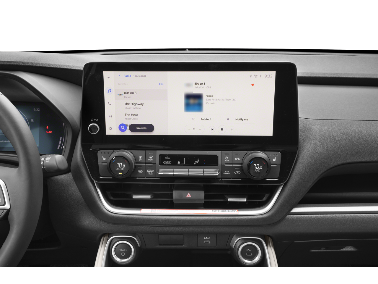 - Radio: 12.3" Toyota Audio Multimedia -inc: 6 speakers, voice activated commands, dual Bluetooth® phone connectivity, wireless Apple CarPlay and Android Auto compatibility, HD Radio, USB and SiriusXM w/3-month platinum plan trial subscription